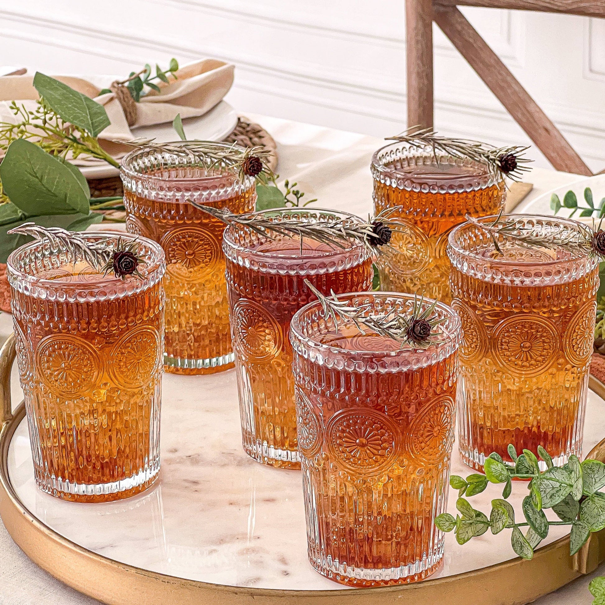 Vintage Textured Clear Drinking Glasses