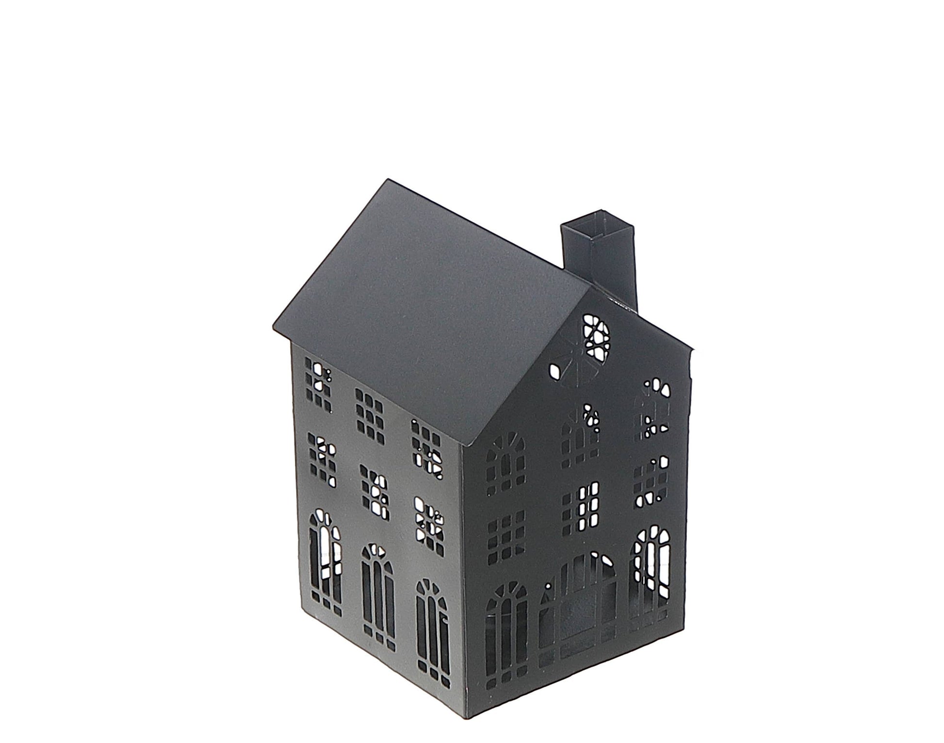 BLACK METAL HOUSE TEALIGHT HOLDER (MEDIUM)