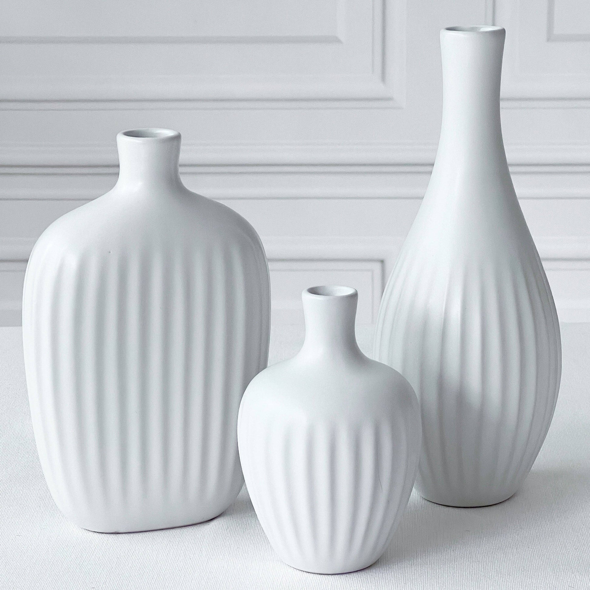 White Textured Ceramic Minimalist Vase (Set of 3)
