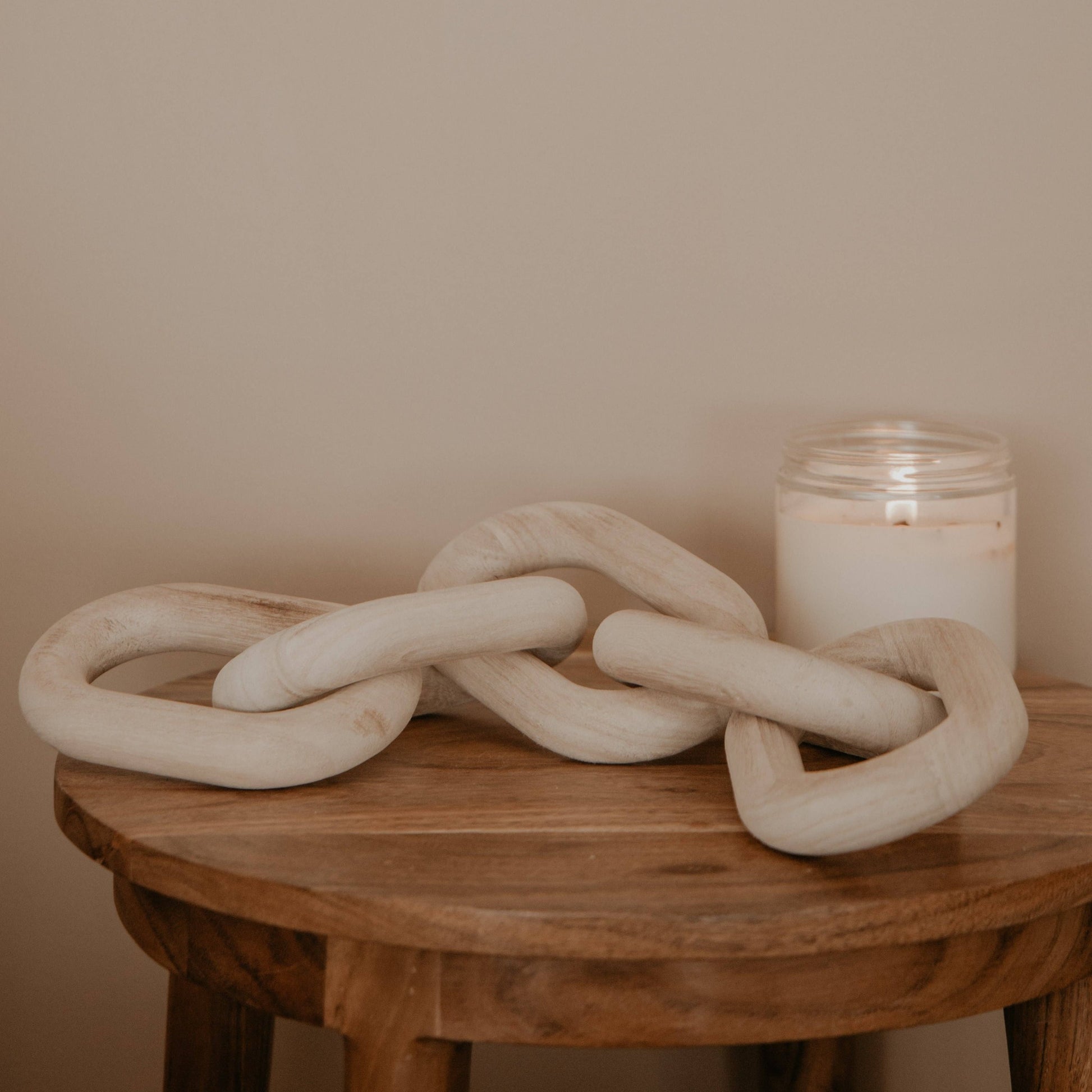 The versatile decor piece that everyone's been raving about! Our new beechwood chain consists of 5 links each. Style over books, baskets, trays, on a table, or shelf.