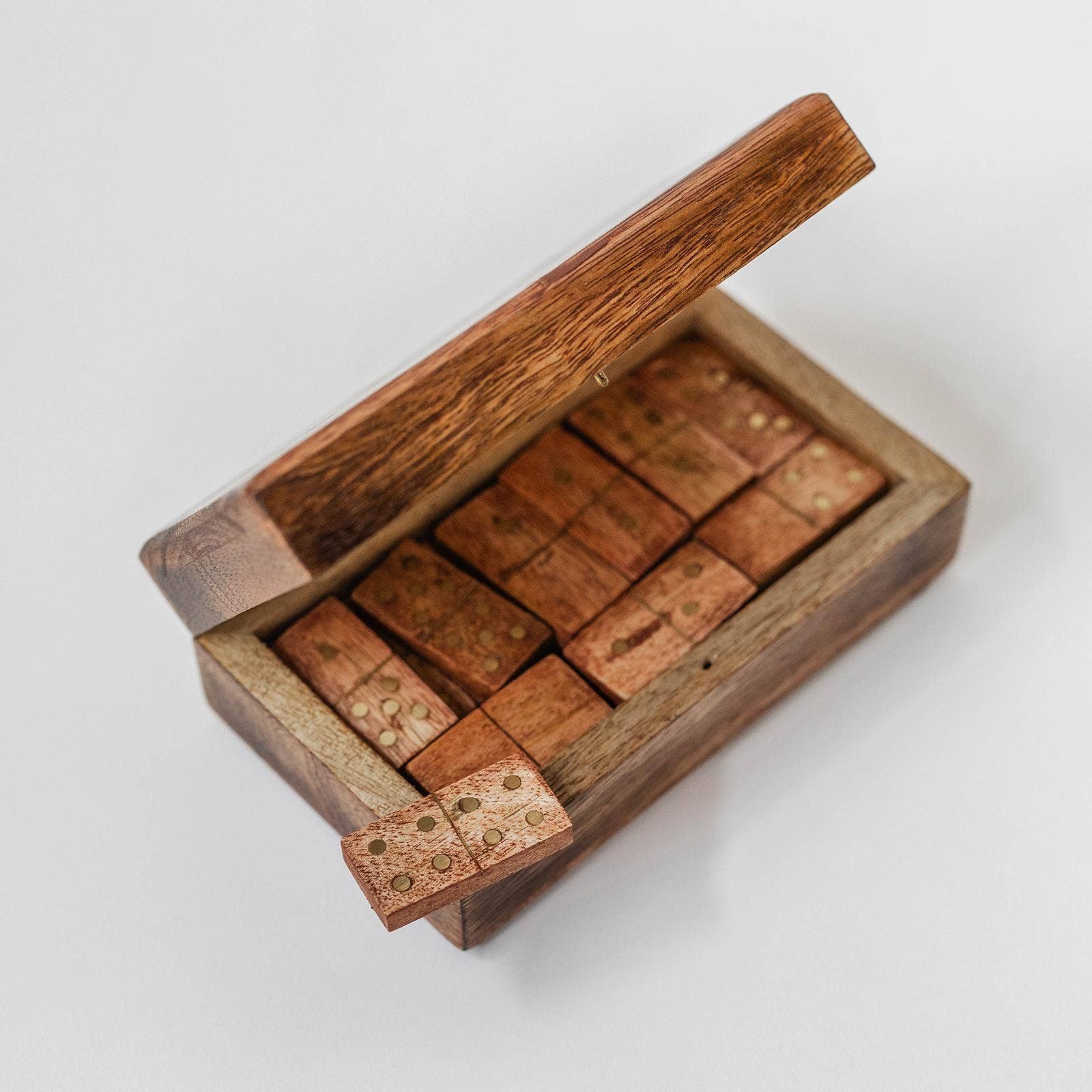 Wooden domino set with box. Antique/Vintage style. Natural wood color (reddish-brown)